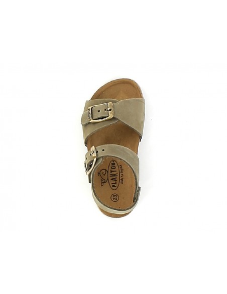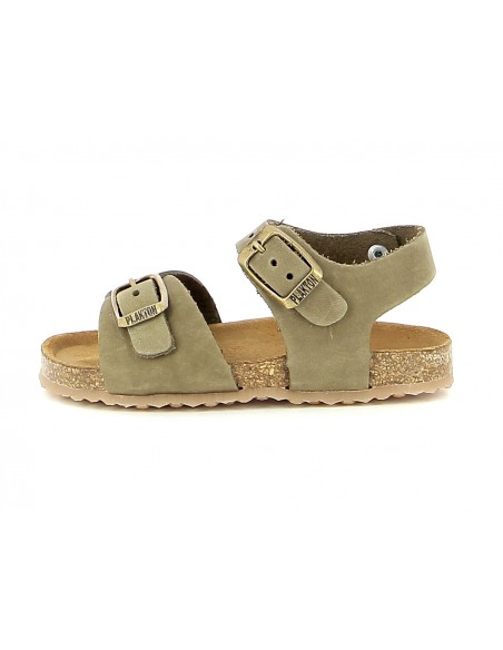 PIXEL - Sandales kaki en cuir pour bébé garçon